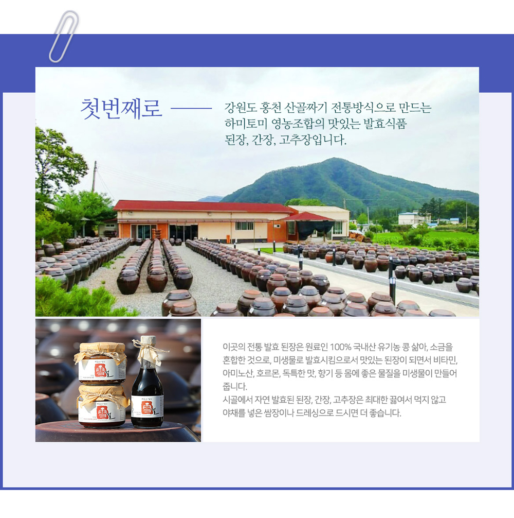 기계가 아닌 사람 손으로 하나하나 정성을 담아간수를 뺀 천일염 염수로 만든 명품 전통장
